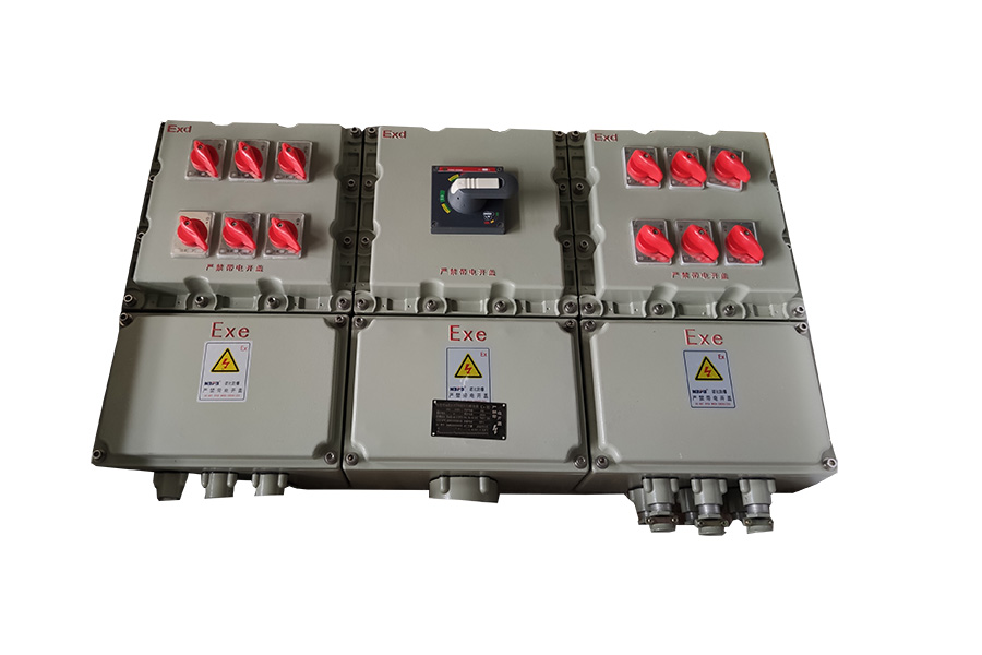 通過將多個防爆電磁起動器或電磁起動箱和防爆斷路器、操作柱和防爆接線箱等組合,可在電壓380V的三相交流50Hz的配電系統(tǒng)中實現(xiàn)動力配送及電動機的集中控制,支路可達160A,可根據(jù)用戶要求實現(xiàn)遠距離控制,并可根據(jù)要求裝信號燈、電壓表、電流表等監(jiān)控裝置;