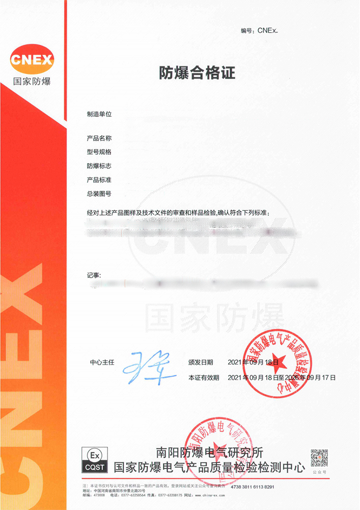 南陽CNEX防爆合格證