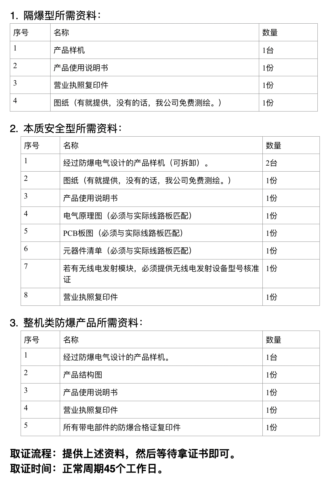 在申請防爆CCC認證之前建議大家事先準備好以下資料,便于下一步進行,資料有: